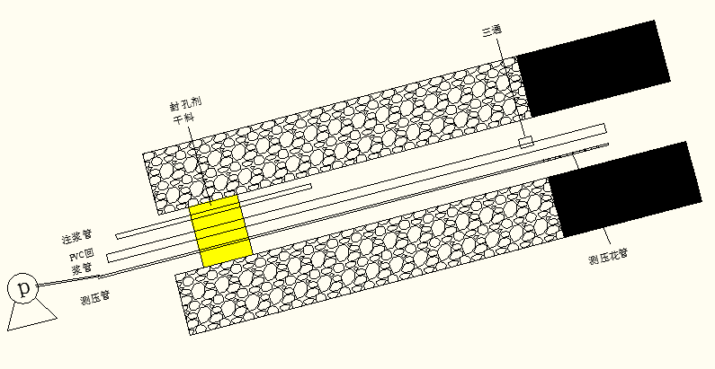 用注漿泵將調(diào)配好的封孔劑漿液(封孔劑與水質(zhì)量比1:1)注入孔內(nèi),直至漿液到達(dá)孔口處時(shí)停止。